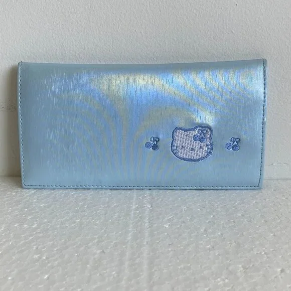 Charming Hello Kitty wallet. Features light blue color. Cute Hello Kitty design on front.