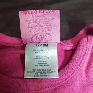 Hello Kitty long sleeve one piece by Sanrio, the Japanese company that created the iconic character. The one piece is pink and has a large Hello Kitty print on the front. The one piece has a round neckline and snaps at the bottom for easy dressing. 12-18 month size. The one piece is a 2014 collectable. Adorable and soft, this is a must-have item for any Hello Kitty fan or collector.