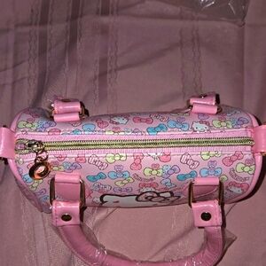 This bag is so well made and the graphics are so beautiful that when you receive it, this bag will truly knock your socks off!! I was so impressed with the bag when I purchased it. Cute Hello Kitty handbag. Features a pink handle and colorful bow design. Perfect for fans.