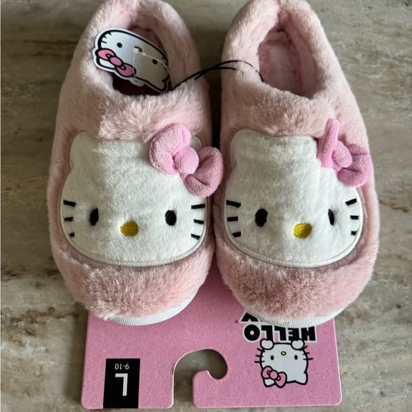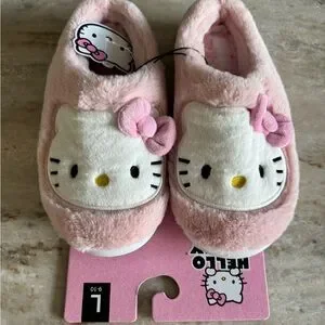 Adorable Hello Kitty slippers in pink. Features a cute Hello Kitty face with a bow.