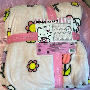 Soft and cozy Hello Kitty blanket. Features cute floral design. Perfect for adding charm to any room.
