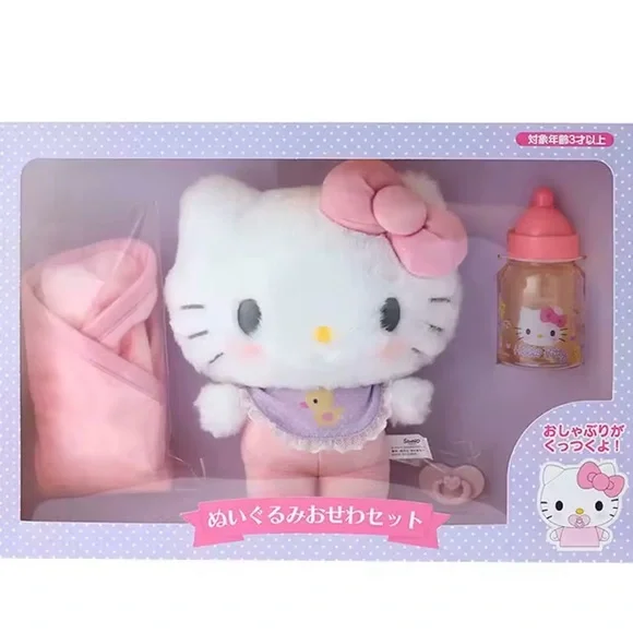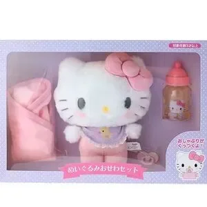 Adorable Hello Kitty plush set with a pink bow and accessories. Perfect for fans and collectors.