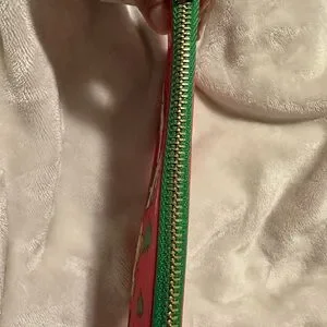 Festive Hello Kitty pouch. Red with holiday-themed design. Perfect for storing small items.