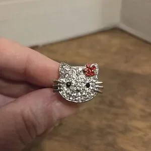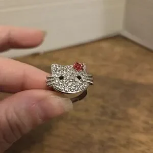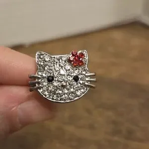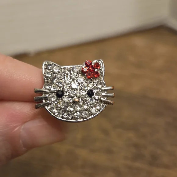 Dazzling cat face ring adorned with a red flower. Perfect for adding a touch of sparkle to any outfit.