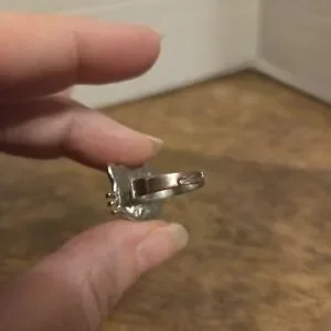 Great used condition, some minor tarnishing noted to band. Fully adjustable. In the closed position it is a size 6.