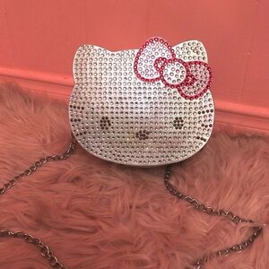 Sparkling Hello Kitty crossbody bag with rhinestones. Features a silver chain strap and red bow detail. Official Sanrio collab with Her Universe. Like new.
