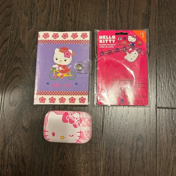 Perfect if you love hello kitty. Includes notebook, eye contact case and necklace