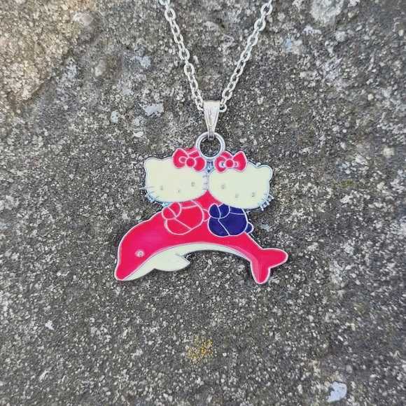 sanrio, Japan, cute, kawaii, Y2K, costume jewelry, enamel charm, silver necklace, everyday necklace, women's jewelry, girl's jewelry, feminine, girly, preppy, cartoon, gift for her, kids jewelry, girls jewelry, stocking stuffers, summer, beach, dolphin, Christmas gift, new preppy