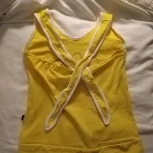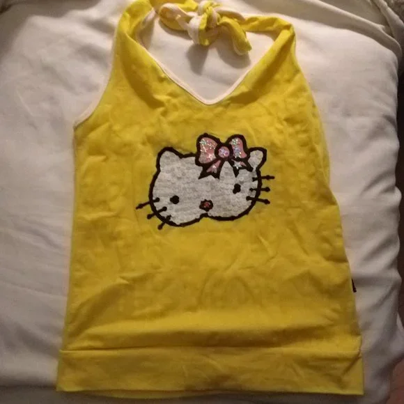 Bright Yellow Hello Kitty sequin top Halter tie at back of neck Slight imperfections/stains: worn once [see pics] Super cute top for summer