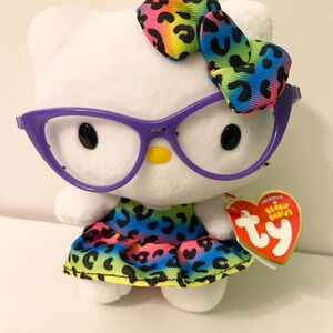 Hello Kitty Ty Beanie Babies Sanrio Plush 6 Inch Purple Glasses Rainbow Dress