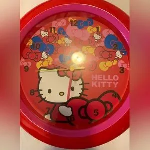 Adorable Hello Kitty wall clock. Requires 1 AA battery. Very good condition.