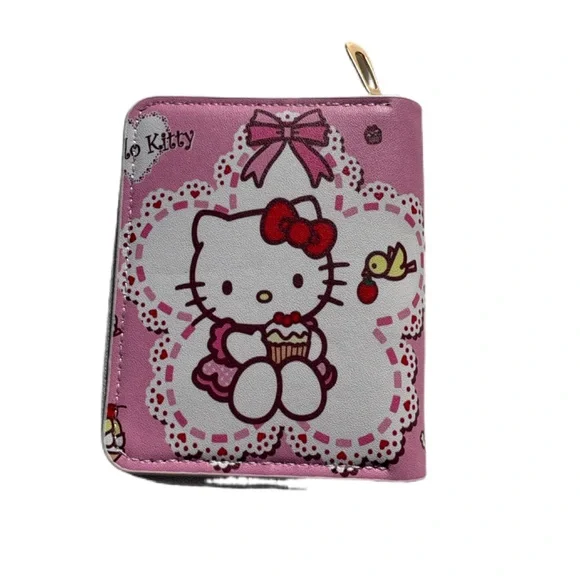 Charming Hello Kitty wallet with cute cupcake design. Brand New. Zip closure