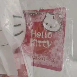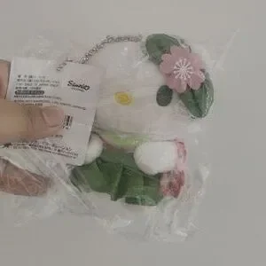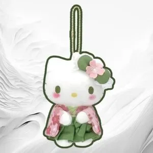 Adorable Hello Kitty design. Features green and pink colors. Perfect for keys and cards.