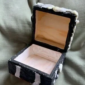 4 inches square and 2.1/4 inches tall Wood