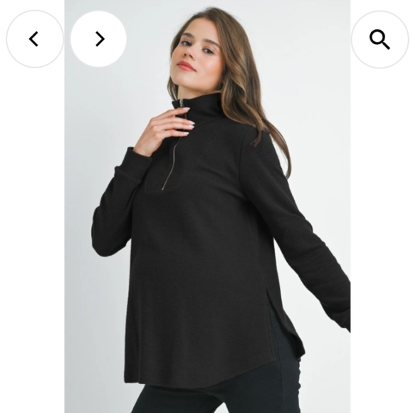 Beautiful and extremely flattering maternity half zip top in black. looking to rotate out some maternity wear. in excellent condition, worn a handful of times. fits a bump generously and extremely comfortable. sold out online