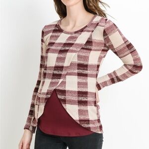 Hello Miz Plaid Overlap Sweater Knit Maternity & Nursing Top Size M