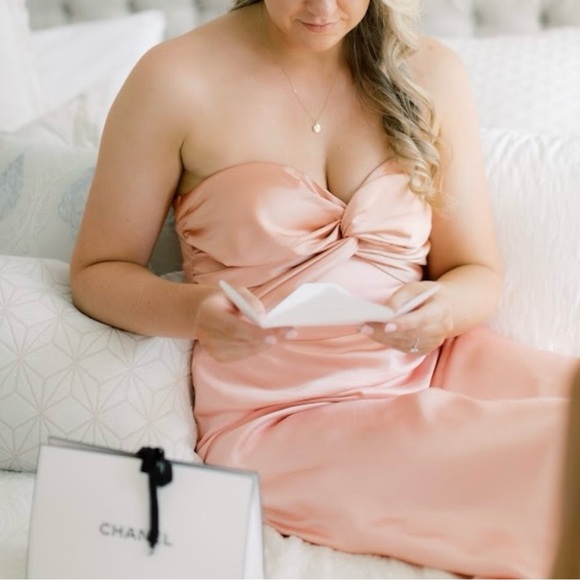 Worn once for wedding! Has some sticky residue on inside breast cup where there was sticky tape used.