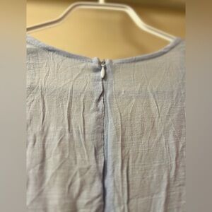 Adorable light blue mini dress. Features short sleeves, a V-neck, and a tiered ruffle hem. Comes with a matching tie belt. Brand new never worn!