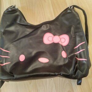 Sanrio Fashion Crossbody Bag for Women - Cute Cartoon Cat Design, Black PVC with Pink Accents, Polyester Lined, Cross BODY