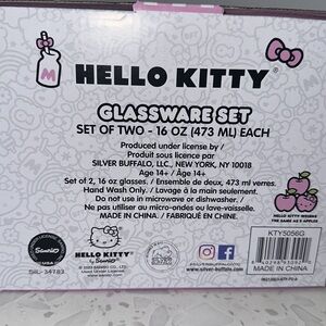 Brand new hello kitty glassware set comes with 2 glasses which are 16oz in size which is a great size glass ! We all love the unicorn hello kitty collection !