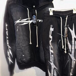Stylish black tracksuit with bold white graphics. Includes hoodie and joggers. Perfect for casual wear, comes with dustbag and tags, brand new never worn!