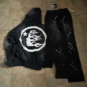 Stylish black hoodie and sweatpants set with bold graphic design. Perfect for casual wear. Comes with dustbags and tags! 100% authentic.