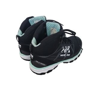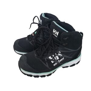 Women's Helly Hansen Aluminum Toe Composite Plate Mid Cut Safety Hiking Work Wear Boots in Black, White & Aqua