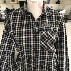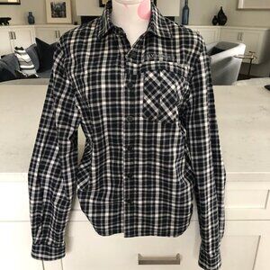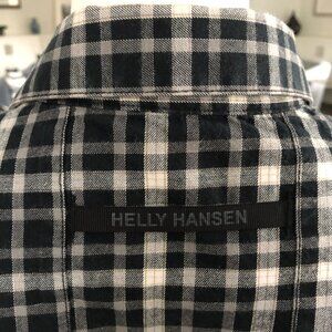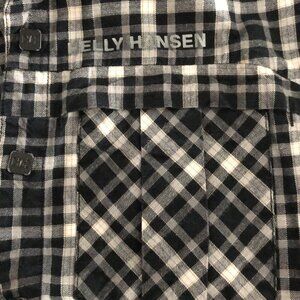 Helly Hansen Casual Cozy Snap Down Cotton Plaid Shirt Black Grey White Sz S