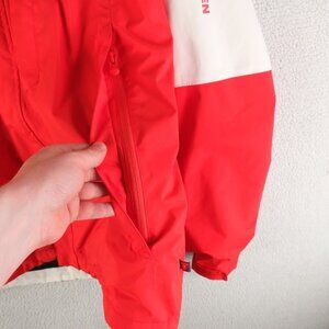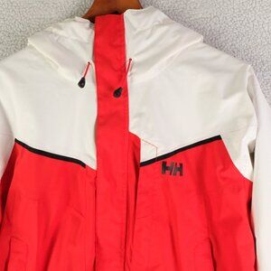 Helly Hansen Jacket Mens Large Red White Winter Recco Primaloft Hooded Pit Zip