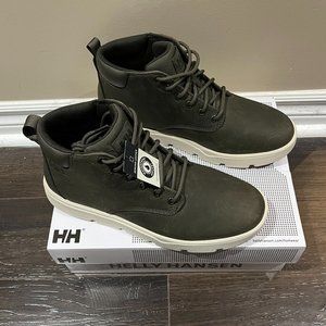 Stylish Helly Hansen men's boots in olive with cream soles. Durable and comfortable for everyday wear.