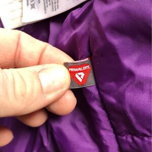 Purple longer length jacket from Helly Hansen. Good winter coat for the warmer winter days that you don’t want to wear a big bulky coat. Fits like a small, I can’t find a size tag. Adjustable waist elastic, two outside pockets on each side. One of each has a clasp.