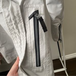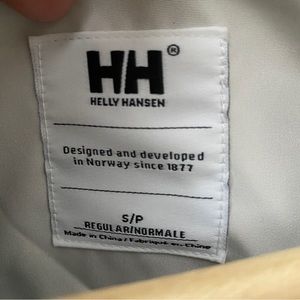 Helly Hansen Trench Jacket in size Small. Barely worn, like new but there is a small stain on the sleeve (as shown in one of the pictures) which is unnoticeable from a distance. Please note: The last 2 photos are just for reference of a similar jacket.