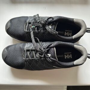Helly Hansen Workwear athletic-style work shoes featuring aluminum toes and composite plates. They are resistant to puncture and electric shock. Worn 3 times, in excellent shape.