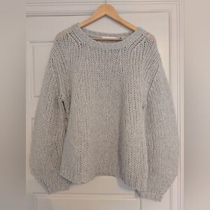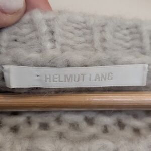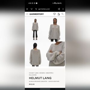 The Helmut Lang Alpaca Brushed sweater is an oversized sweater with a round neckline, dropped shoulders, and ribbed trim.