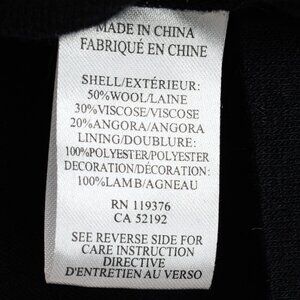 Composition: Shell: 50% wool, 30% viscose, 20% angora. Lining: 100% polyester. Decoration: 100% lamb.