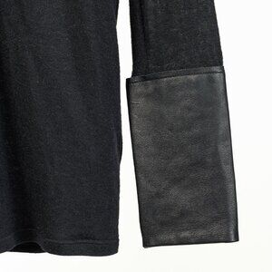 Helmut Lang Black Angora Leather-Trim Cozy Long Sleeve Top