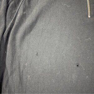 Helmut Lang Men's Size XL 100% Wool 1/4 Black Zip Up Jacket with Italian Yarn in fair pre owned condition as shown in the photos with two holes in the middle of the chest and one on the left front sleeve as shown in the photos.