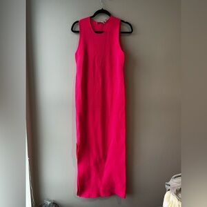 Helmut Lang Neon Pink Tank Maxi Dress with Slit