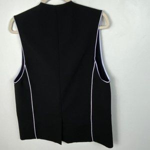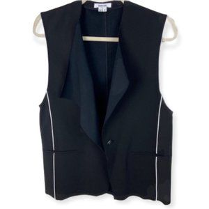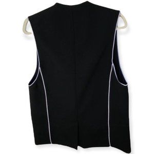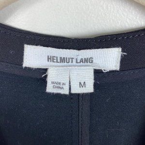Helmut Lang Pierce Buttoned Origami Vest Black Women's Size Medium. Wool blend with contrast side piping. Peaked lapels. Hip welt pockets. Asymmetric single-button front; with unfinished hem. Stitched back with centre vent. Virgin wool / cotton / other fibres. Imported of Italian material. Great pre-owned condition. Please review all photos.