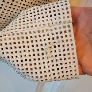 Size S, off white/very light gray, perforated 100% lamb leather jacket with full zip. Minor damage on back side of left sleeve but not highly visible due to nature of the perforation. Gorgeous jacket!!