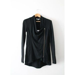 Wool blend cardigan with front exposed zip fastening, slash pockets at front, and seam detailing along back.