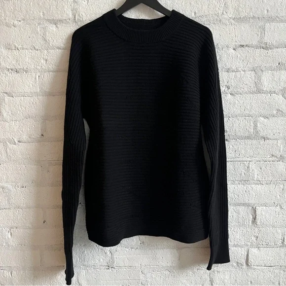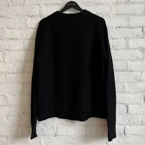 Helmut Lang black 100% lambs wool crewneck sweater. Ribbed. Heavy/chunky. Minor distressing throughout the body.