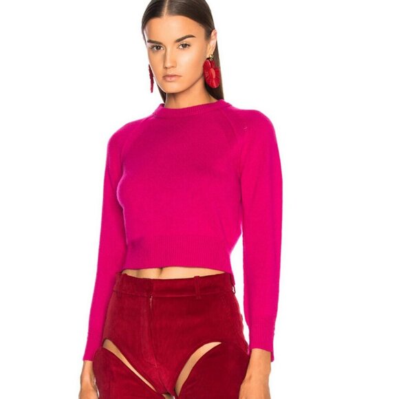 Helmut Lang cropped cashmere sweater in magenta pink Medium knit designer crew
