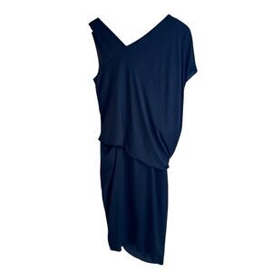 NWT and in perfect condition. Helmut Lang dark green mini dress. This elegant draped dress offers a sophisticated look with an asymmetrical hemline and a one shoulder look. This dress is a beautiful designer piece that has a wrapped dress effect. Perfect for evening events, wedding season or formal gatherings. Flat lay measurements: 17" pit to pit, 38" length.