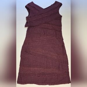 Pretty plum dress with 3 lacy tiers. Soft cotton blend fabric with some stretch.