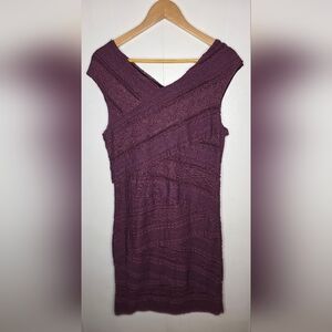 Hem And Thread Lacey Fitted Dress, Plum Colour, Cotton Blend, Lg