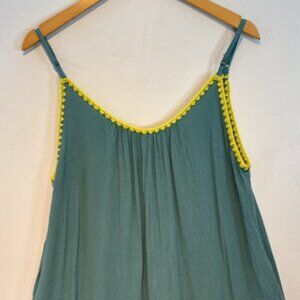 Hem & Thread wide leg pull on jumpsuit/rayon deep sage/yellow size medium