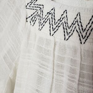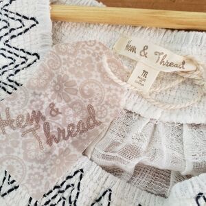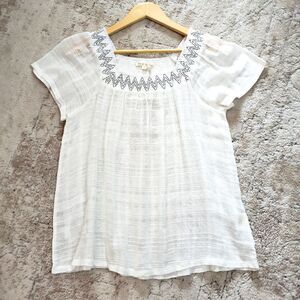 Hem & Thread Anthropologie Ivory Smocked Cotton Embroidered Boho Cottagecore Top