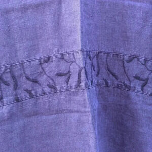 This beautiful Royal Purple Hemp dress is from my own closet from the days before children when I had a disposable income. The dress features a strip of embroidery at the waist and 3 decorative shell buttons on the back. As would be expected from a 100% hemp piece of clothing, its in fantastic condition.