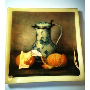 Henk Bos Still Life Art Tile Vintage | Ceramic Wall Plaque with Pitcher & Orange